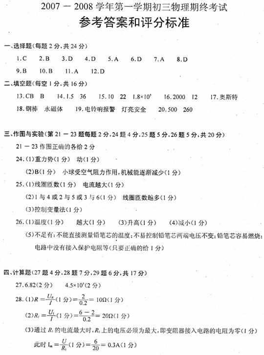 28.在图所示的电路中,电源电压为6伏且不变,滑动变阻器R2上标有“50