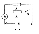 6.如图2所示的电路中,电源电压U保持不变,当开关S由断开到闭合时,电流表两次示数之比是1∶5;由此可知,电阻