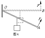 11.如图4所示,杠杆可绕O点转动,力F作用在杠杆一端且始终与杠杆垂直;在将杠杆缓慢地由位置A拉到位置B的过程中,力F