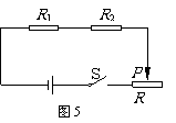 如图5所示的电路图中,定值电阻R1、R2和滑动变阻器R串联,R1和R2两端的电压分别为U1和U2,当滑动变阻器的滑片P向右滑动时