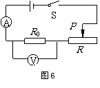 某同学做电学实验时,电路如图6所示,已知他所用电流表的量程为0-0.6A,电压表的量程为0-3V,电源电压为6V(保持不变),滑动变阻器的最大阻值为50Ω,定值电阻 R0为10Ω,开关S闭合后,在移动滑动变阻器的过程中,下列情况可能出现的是