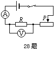 28.(1)如右图 ①电阻RX两端的电压U ②通过电阻RX中的电流I