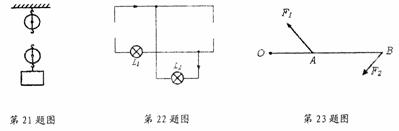 23.如图所示,试将电池组和开关符号填入电路的空缺处,使电灯L1、L2能同时发光。