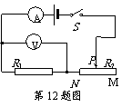 12.如图所示电路,当滑动变阻器的滑片由M向N端滑动时,电流表和电压表示数的变化情况是