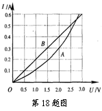 18.如图所示,是两个电路元件A和B在某一温度下电流与两端电压的关系图.