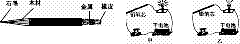 (1)在如下左图中标出了制成铅笔的几种材料,通常情况下属于绝缘体的是______