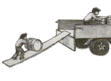 油桶搬运上汽车,常常用如右图的方法。小明想: