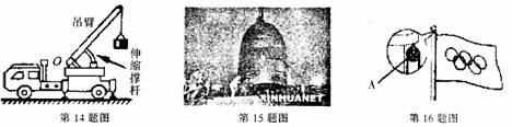 14.如图为某种吊车的工作示意图.利用伸缩撑仟可使吊臂绕O点转动;伸缩撑仟为圆弧状,伸缩时对吊臂的支持力始终与吊臂垂直.则吊臂是一个 杠杆.伸缩撑杆匀速顶起吊臂的过程中.伸缩撑扦的支持力渐渐 (选填“变大”、“变小”或“不变”).