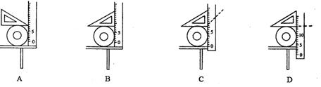 20、如图,用刻度尺和三角板测量一个圆柱体的直径,其中测量方法正确的是 ( )