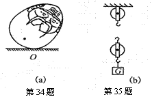 35、在图b中画出使用滑轮组提起物体时最省力的绕绳方法。