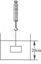 如图所示,放在水平桌面上的薄壁圆柱形容器重4N,底面积100cm2,弹簧测力计的挂钩上挂着重为10N的物块,现将物块浸没水中,容器内水面由16cm上升到20 cm(g=10N/kg)。 求: