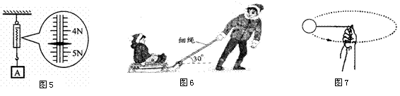 17.图7为手拉小球做圆周运动的示意图,请在图中画出重4N的小球所受重力的示意图。(2分)