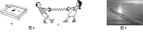 18.如图8所示是某小组同学所做的两个小实验,其中研究力可以改变物体运动状态的是______图,研究力可以使物体发生形变的是______图。(2分)