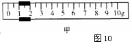 b.往空烧杯中加入适量盐水,用天平称烧杯和盐水的总质量。天平平 衡后,右盘中砝码的总质量是140g,游码位置如图10(甲)所示。则盐水和烧杯的总质量
