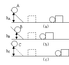 28.如图所示,在探究“物体的动能与哪些因素有关”的实验中,将A、B、C三个小球先后从同一装置的hA、hB、hC高度处滚下(mA=mB<mC、hA=hC>hB),推动纸盒运动一段距离后静止。