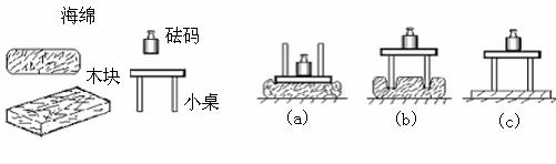 (3)设图(b)中小桌对海绵的压强是Pb , 图(c)中小桌对木板的压强是PC,则Pb__ PC(选填“小于”、“等于”或“大于”)。