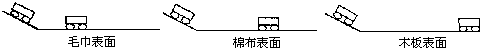(4)在研究“摩擦力对物体运动的影响”时,让同一小车从同一斜面的同一高度滑下,是为了使小车到达斜面底部的速度_____________。接着在表面材料不同的水平面上运动,分别停在如下图所示的不同地方。