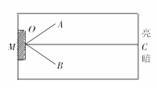 如图所示,相邻两室,一明一暗,在两室之间的墙壁上有一平面镜M,且∠AOC=∠BOC,甲、乙两人分别站在A、B两点,面向平面镜张望,则