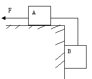 如图所示,A、B两木块的质量分别为1kg和0.5kg,A与水平桌面间最大静摩擦力为2N。现在A上施加水平向左的拉力F,则能使A、B保持静止的拉力F为(取g=10m/s2) (F为取值范围)