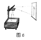 14、如图6是投影仪工作原理示意图,投影仪成像的特点是:
