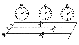 26. 如图13所示是甲、乙、丙三个运动员跑步比赛中的情景,三块表的示数分别表示了各运动员从起点跑到图中所示位置时所用的时间。从图可以判断出运动员______________跑的最快。(选填“甲”、“乙”或“丙”)