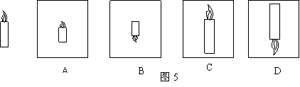 15.如图5所示,把一只点燃的蜡烛放在距离凸透镜2倍焦距以外的地方,在透镜的另一侧调节光屏位置可找到一个清晰的像。这个像是下图中的( )