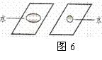 在两块相同的玻璃片上,小明同学分别滴一滴质量相同的水,如图6 所示。观察图中情景可知,他主要研究蒸发快慢是否与( )