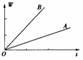 3、图1是A、B两个物体做功与所用时间的关系图像,由图可知,A的功率PA与B的功率PB的关系是( )。