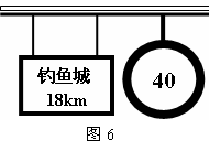 的(选填“静止”或“运动”),后面的卡车是 的(选填“静止”或“运动”)。小南看到如图6所示的公路交通标志牌,在遵守交通规则的前提下,则从交通标志牌到钓鱼城最快要用