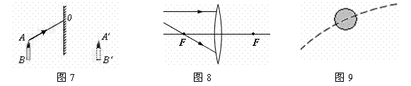 (2)如图8所示,请画出入射光线经过凸透镜后的折射光线。
