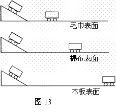 21.人们常用推理的方法研究物理问题。在研究物体运动状态与力的关系时,伽利略等科学家曾做如图13所示的实验:让小车从斜面的同一高度滑下,观察、比较小车沿
