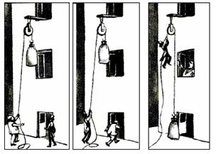 (2)如果你是图中的瘦子,为了防止图中出现的尴尬局面,你会如何改进装置?画图说明。