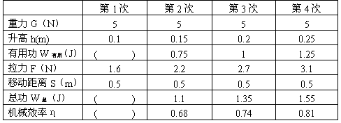 D. 改变斜面的高度,做4次实验,记录实验数据如下表。