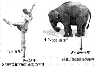 1. 根据下图所给条件,比较芭蕾舞演员足尖和大象对地面的压强,哪个大?