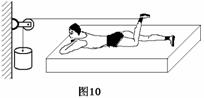 某同学用图10所示牵引装置来锻炼关节的功能。重物的质量为3㎏,小腿拉绳使重物在4s内匀速上升0.5m,若不计绳的重力及摩擦,(g=10m/s2)求: