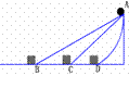 分别沿三个面自由滑下,撞击放在B、C、D三点完全相同的物块上,物块在撞击力的作用下移动相同的距离停下,