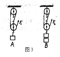 6.如图3所示,用滑轮组A匀速提升一个钩码,相同的滑轮组B匀速提升两个钩码(已知每个钩码质量相同,且不计绳重和摩擦力),则下列说法中正确的是 ( )