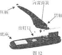 如图12所示,是我们常见订书机(订较厚书籍)。订书机的构造和使用中应用到了我们所学过的物理知识,请你列出两处。(不能与示例重复)