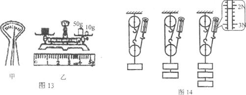 23.如图13所示,小丽同学将托盘天平放住水平桌面上,游码移到标尺的 处,发现天平的指针指在甲图所示位置,若要使天平平衡,应将右端平衡螺母向 (填“左”或“右”)旋动;图乙是一次正确测量的情景(天平下方为游码标尺的放大图),则物体的质量是 g。用这架天平测量另一金属块的质量时,用镊子夹取50 g、20 g、l0 g、5 g砝码各1个放入右盘中,观察到指针右偏。小丽同学接下去应进行的操作是: 。(该天平砝码盒中最小砝码为5 g)