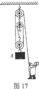 28.建筑工地用如图l7所示的简易滑轮组提升砖块,某工人将重500 N的砖块一次性匀速提升到离地面4 m高的砌墙处,所用拉力为200 N,时间为20 s,这次提升砖块过程中: