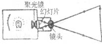 12.如下图所示是幻灯机的工作原理图,幻灯机的镜头相当于一个__________镜,为了使观众看到正立的像,幻灯片要__________(填“顺着”或“倒着”)插入架上。