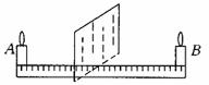 (4分)如下图所示:某同学在做探究平面镜成像特点的实验时,将一块玻璃板竖直架在一把直尺的上面,再取两段等长的蜡烛A、B,一前一后竖直放在直尺上,实验过程中眼睛始终在蜡烛A的一侧进行观察.
