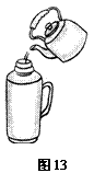 一天,小明在家向保温瓶中灌开水,坐在远处看报纸的爷爷提醒