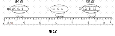 32.如图18,是某实验小组做“测平均速度”实验的情形,显示时间的数字钟的时间格式是“时:分:秒”。则小车从甲到乙所通过的路程是_________cm,小车的平均速度是_________cm/s;全程中的平均速度是 cm/s。