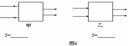 实验中有时需要将一束粗平行光变成细平行光,这可以利用两块透镜的组合来解决。请在图4的两个方框中各画出一种组合方式(要在图中画清光束粗细的变化),分别写出两块透镜间的距离s跟两块透镜到各自焦点的距离f1、f2的关系。
