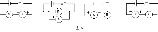 15、如图5,如果想用电流表测小风扇工作时的电流,下面电路图设计正确的是
