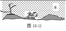 泽湖乘船游玩时,发现水面下某处有一只青蛙(如图10-11所示),他用激光笔照射到了这只青蛙。