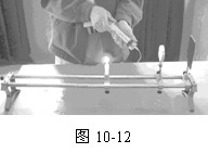 26.某校同学在学习了眼睛和眼镜内容后,想通过实验探究近视眼的形成原因.他们选择了如下器材:蜡烛、用薄膜充入水后制成水凸透镜(与注射器相连,注射器里有少量水)、光屏等.水凸透镜的厚薄可以通过注射器注入、吸取水的多少来调节.其装置如图10-12所示.