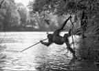 14.如图所示,为了捉到一条鱼,猩猩用矛拼命地刺向水里却没有成功,这主要是由于光的_______现象,猩猩看到水中的鱼比实际位置要_______一些(选填“深”或“浅”)。