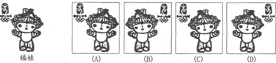 15、下面方框中的四个图像,其中一个是福娃在竖直放置的平面镜中的像,你认为应当